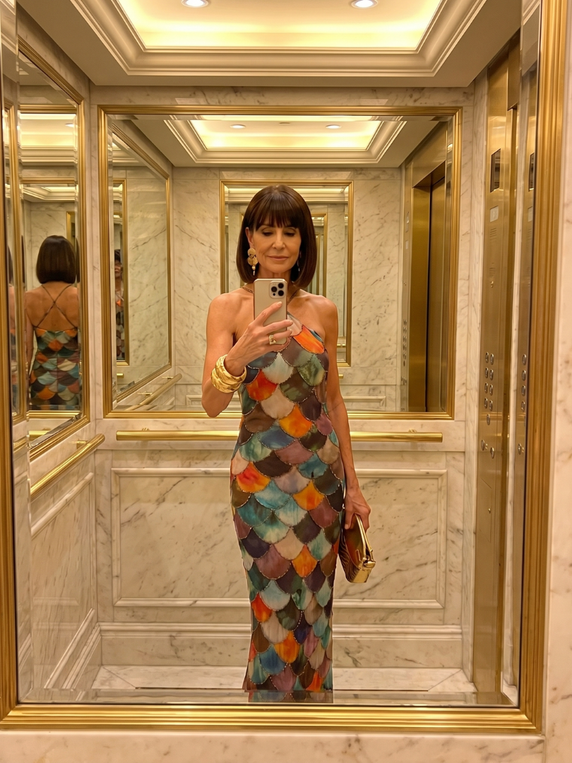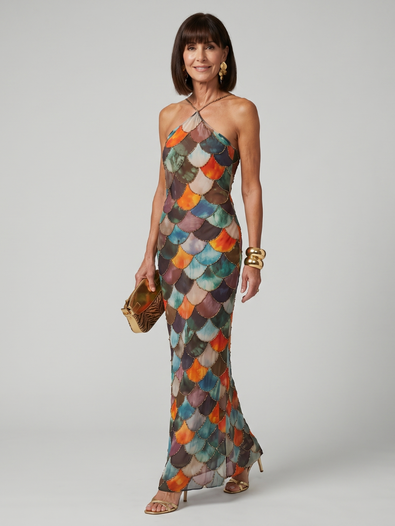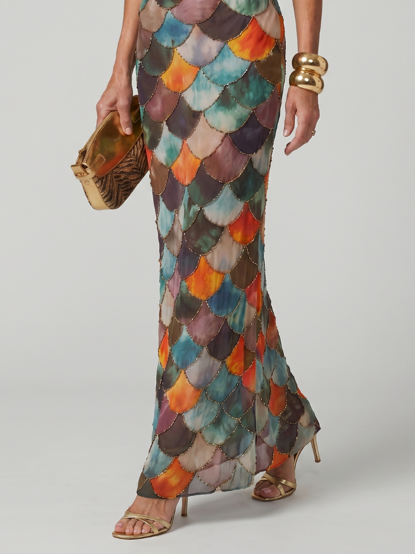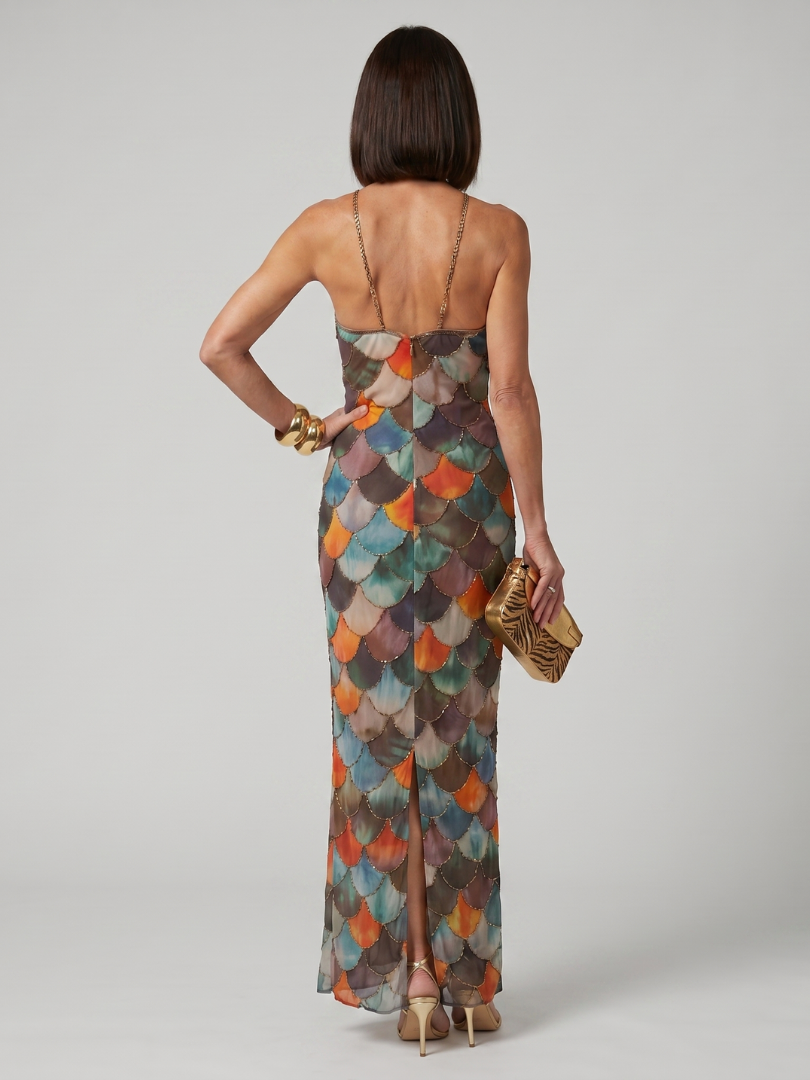 Larkin | Fitted Multicolor Scale Pattern Maxi Dress